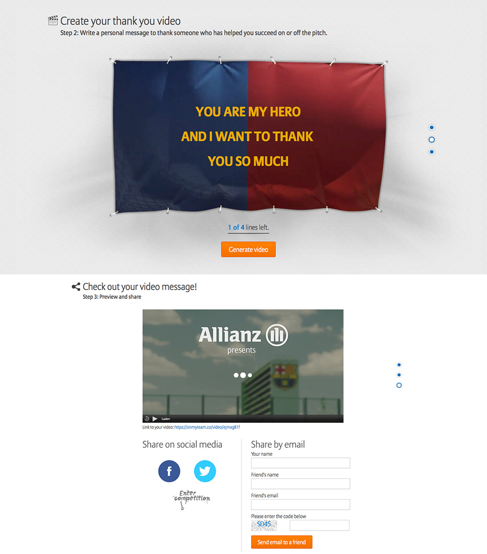 Hierbei sollte ein individuelles Video, das im Auftrag der Allianz, die einer der Hauptsponsoren des FC Barcelona waren, realisiert werden. In diesem Video sollte es für Fans des Clubs möglich sein, Freunde und Bekannte mit einer personalisierten Videobotschaft zu grüßen.