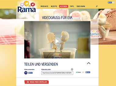 This happens by adding customizable speech bubbles to the commercial which enable to tell a whole new story. You can find possibilities for the creation of new Rama Love Stories on the website (produced by deepblue) or on Rama’s Facebook page.