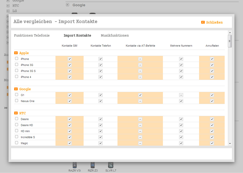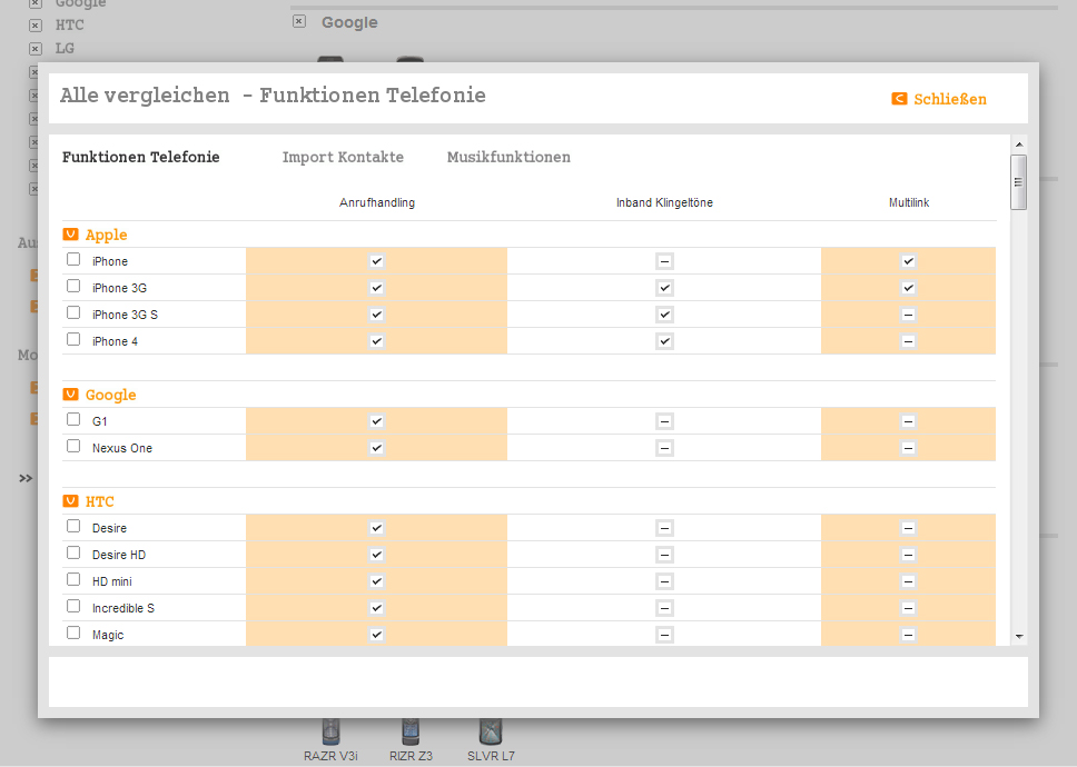 Implementation of a tool, displaying compatibility between smart radios and mobile devices regarding possible functionalities.